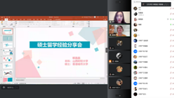 陶媛校友以“人生若只如初见”为题,将自己的十年留学经验称为“十年修行”,从内在驱动力、目标与理想、精彩点滴和跪着走完四个方面进行了精彩的介绍。解晶晶校友重点介绍了留学的具体流程和准备工作,又结合自身的留学经历对香港留学的相关事宜进行了介绍。吴思粤校友从留学准备、留学生活与学习、留学出路与未来的感悟四个方面进行了交流,并就雅思考试进行了心得分享。田欣悦、王晔、孙柯3位校友对出国留学前的准备、留学中的感悟和注意事项、留学后相关事宜处理、就业等方面的问题进行了分享和交流。