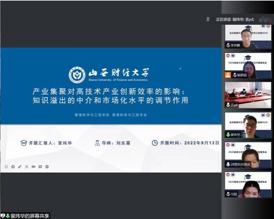 为落实立德树人根本任务,提高研究生学位论文质量,世界杯赛程 于2022年9月13日举行2020级管理科学与工程专业硕士研究生开题报告会。为保证论文选题的前沿性和创新性,综合考虑当前疫情防控形势,此次开题报告会采用线上线下相结合的方式进行,20名同学线上参加、12名教师线下组成答辩小组参加此次开题报告会。