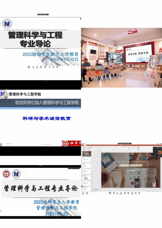 组织开展2022级研究生新生入学教育系列活动,活动通过线上与线下、集中与分散、专家讲授与直播互动相结合的方式,包含党史学习教育、知校荣校教育、学术诚信教育、日常行为管理教育、宣传疫情防控知识、生涯规划与学业发展、专业导论、心理健康教育、禁毒知识讲座、预防电信诈骗、励志教育、杰出校友分享、文献检索与数据库使用和主题班会等,取得了良好的教育效果。