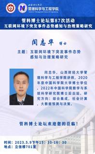 在立信楼701教室举办了第87次管科博士论坛。本次论坛主题为“互联网环境下突发事件态势感知与治理策略研究”,旨在进一步凝练学科方向和特色,加强应急管理专业建设、推动世界杯赛程