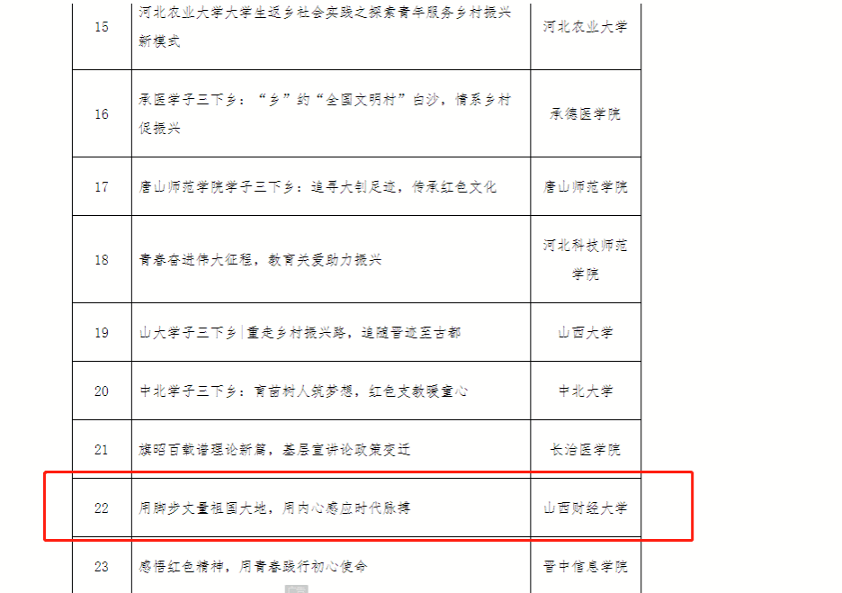 高度重视暑期“三下乡”社会实践活动的开展,从平台搭建、资金保障、团队管理、专业指导等方面给予大力支持。2022年暑假期间,校团委采取点面结合、分散与集中并举、线上线下相结合的方式,搭建“国家重点团队—省级重点团队—校级实践团—院级实践团”四级梯队,广泛、有效地组织动员青年学生参与社会实践。上万名财大学子围绕乡村振兴、“追寻总书记足迹”“百乡千村”“让晋商文化火起来”等主题,进行理论宣讲普及、党史学习教育、乡村振兴促进、发展成就观察等形式多样的“三下乡”社会实践活动,引领广大青年学生通过社会实践为实现中华民族伟大复兴的中国梦汇聚磅礴青春力量。活动的扎实开展,得到了实践地干群的肯定和欢迎,也得到中青校园、中国青年网、山西青年报等媒体平台报道,深化了实践育人成效,扩大了世界杯赛程