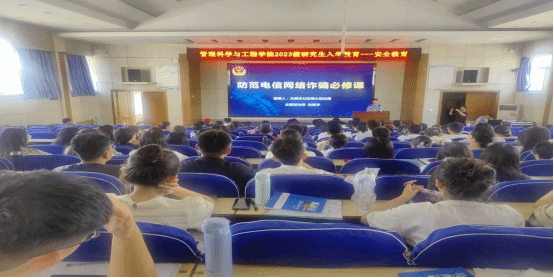 邀请太原市小店区北营派出所民警张警官,向同学们普及类常见的几类诈骗手段,结合实际案例分析,提醒同学们严防网络兼职刷单诈骗、冒充客服诈骗等各种电信诈骗,提醒同学们面对诱惑保持理智,增强自身防范意识。