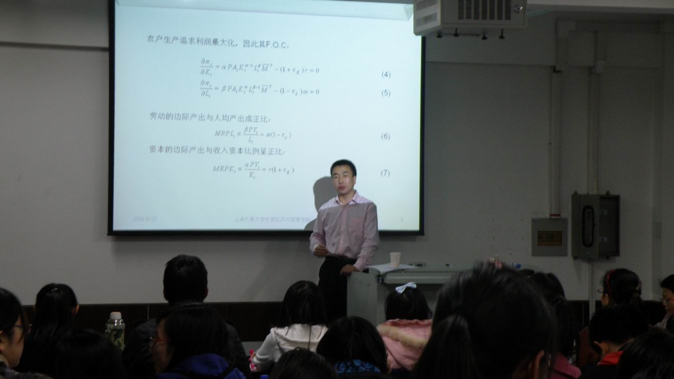 2010年10月27日19:00-21:00,上海交通大学管理世界杯赛程 博士研究生盖庆恩来世界杯赛程 做“要素配置扭曲与农业全要素生产率研究”的报告,郭淑芬副院长主持报告会,地点:新南区SA610沙盘模拟实验室,参加人:世界杯赛程 和统计世界杯赛程 部分老师及硕士、博士研究生等100人。
